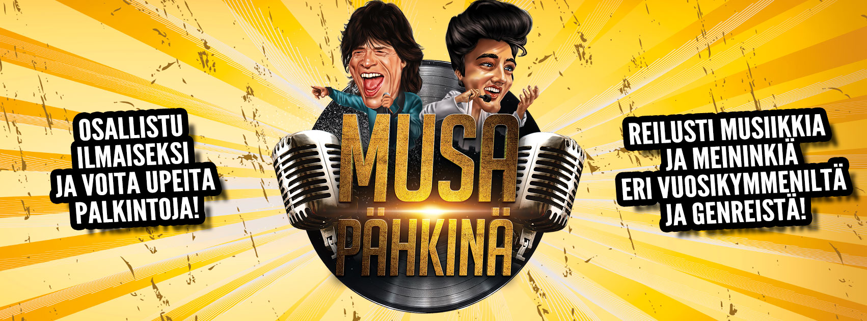 Musapähkinä on uudenlainen koko kansan musavisailu joka esitetään näyttävästi ravintolan screeneiltä, muhkean äänentoiston kera! Mukana on monipuolisesti kuvia, musiikkinäytteitä ja laajasti viihdyttäviä musiikkityylejä laidasta laitaan!