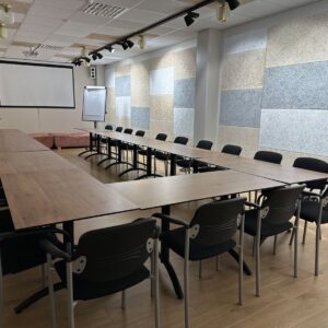 *Kalustamisvaihtoehtoina luentoryhmittely, U-ryhmä tai yksi pöytäryhmä